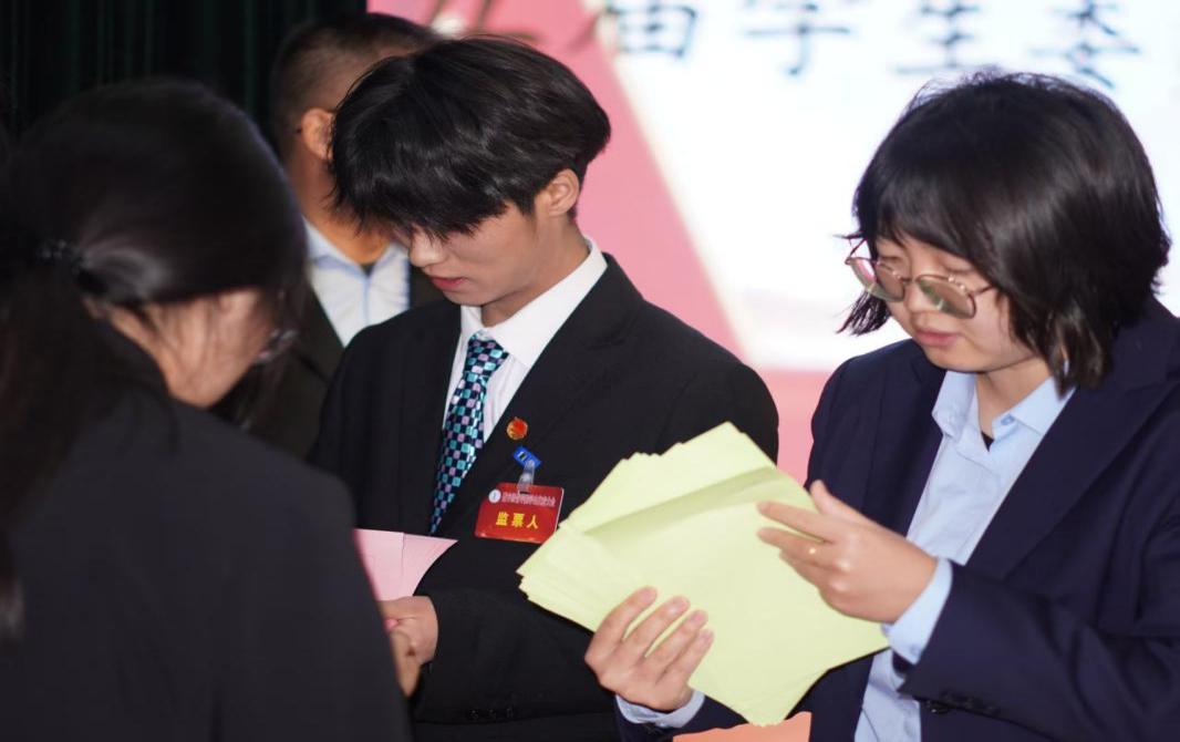 在接下来的选举环节,会议宣读了第五届员工委员会候选人及主席团候选人的基本情况。与会代表们秉持着公平、公正、公开的原则,郑重投下了自己庄严的一票,选举产生球盟会第五届员工委员会委员及主席团成员。校团委曹伟老师现场宣读了选举结果。