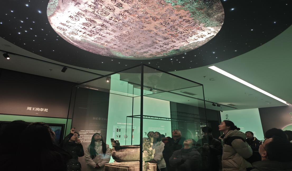 宝鸡青铜器博物院作为国家一级博物馆,以“青铜国宝,破图而生”的建筑设计承载着48万余件珍贵文物,其中何尊等禁止出国(境)展览文物更是见证华夏文明的“活化石” 。活动现场,讲解员以生动风趣的语言风格,将青铜器背后的历史故事娓娓道来。从“青铜器之乡”的窖藏发现,到“周礼之邦”的礼乐制度,再到“智慧之光”的青铜铸造工艺,讲解员结合器物造型、纹饰细节与铭文内涵,把三千年前的周秦文明讲得头头是道,让原本庄重的文物变得鲜活可感。