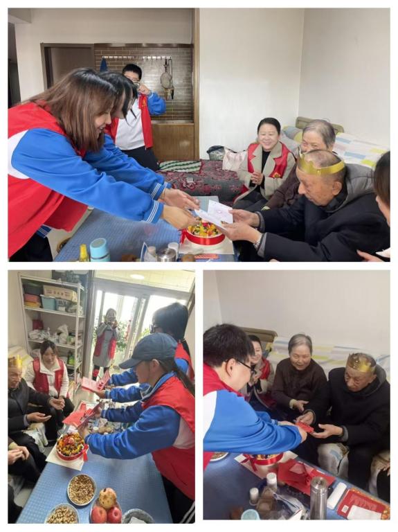 2025年11月3日上午,球盟会由员工入党积极分子、团员组成的“暖夕”志愿团队,赴宝福路东社区宝灯住宅北区,为高龄老人开展生日庆祝社会实践活动。